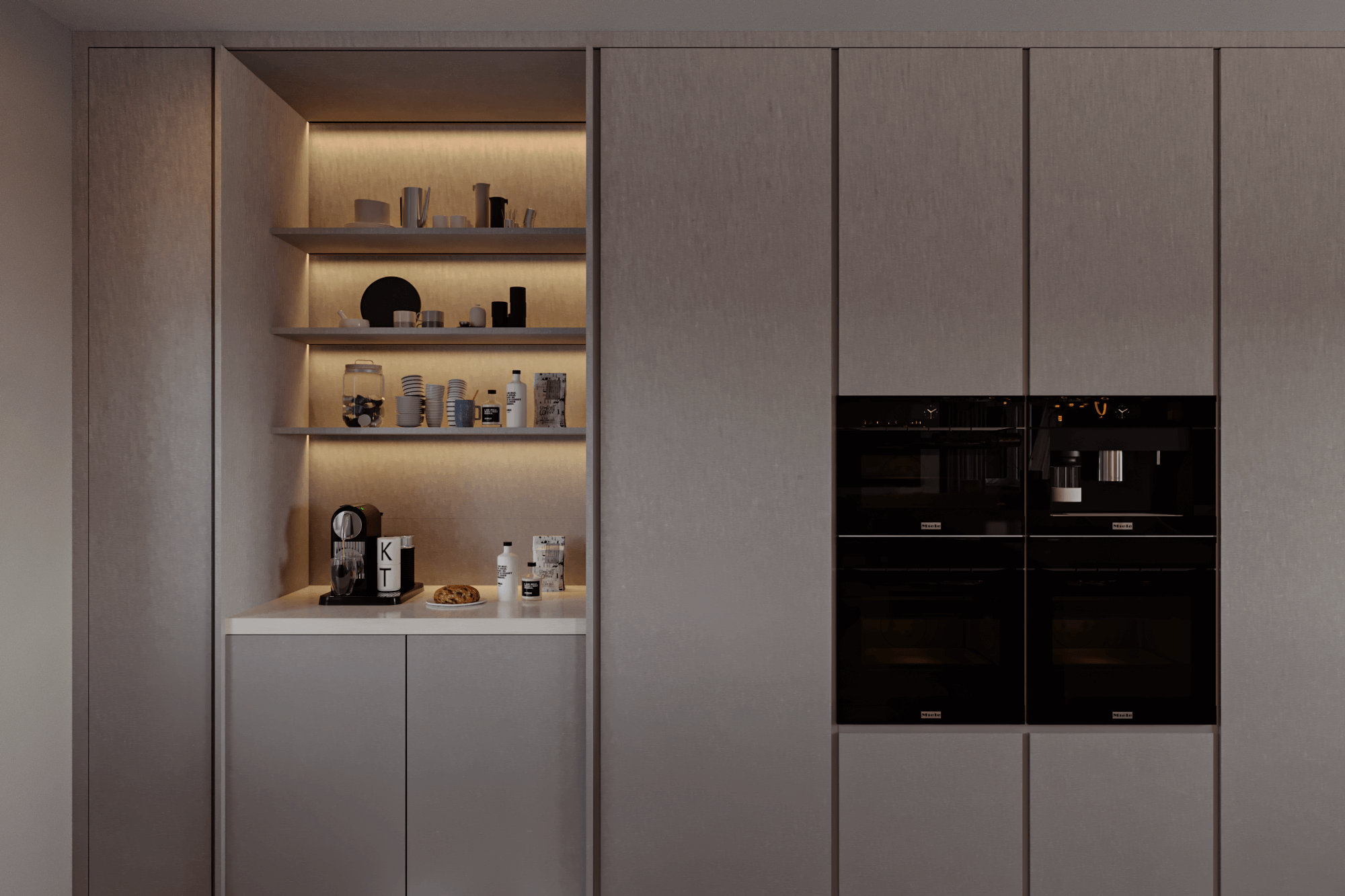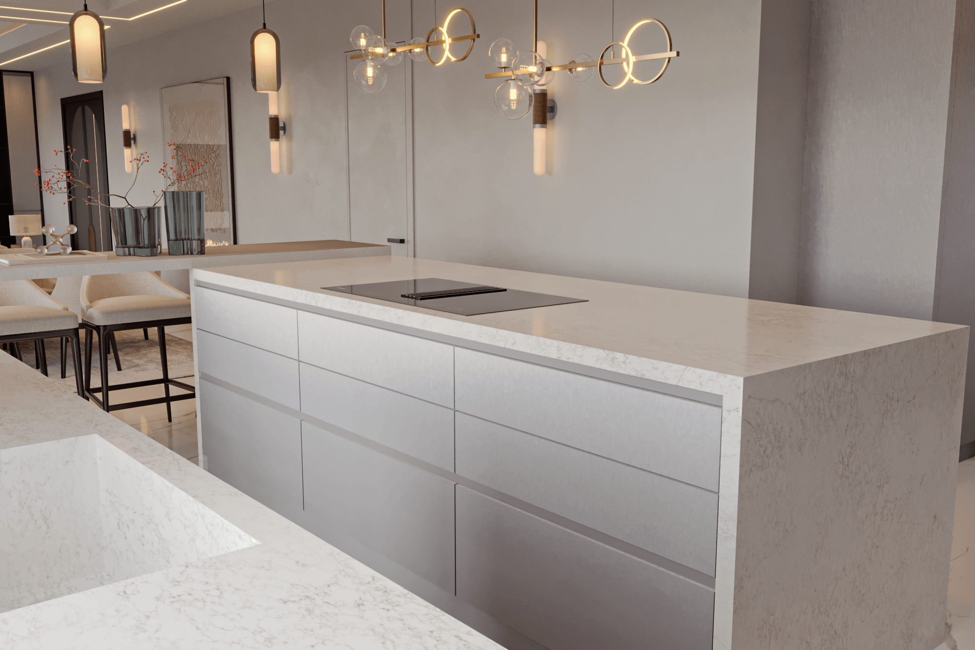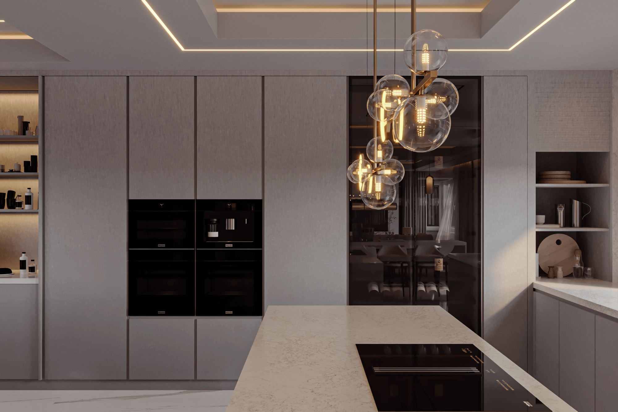 A showcase of Meiger’s haute couture approach to luxury living, this Isle of Man residence embodies calm precision and emotional harmony. Through our design lens, interiors are curated in creamy and beige tones, with low, confident furniture pieces framed by tailor-made curtains that capture the gentle movement of the wind. Proof that a house need not be vast to evoke a sense of infinity, elegance, and timeless comfort.