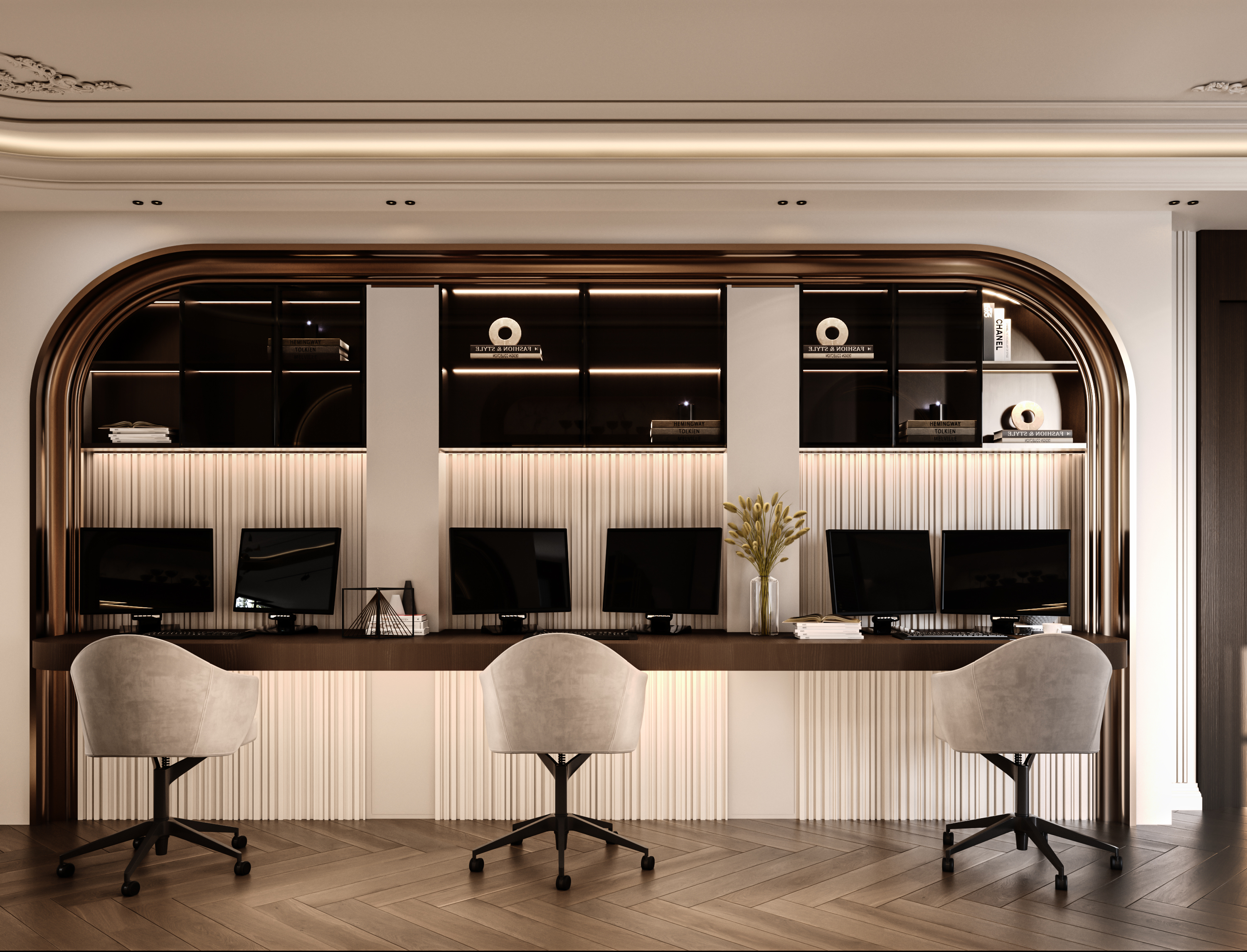 Inspired by a contemporary opulent style, the showroom blends bold aesthetics with refined detailing, demonstrating the seamless use of premium materials including metals, stone, and wood, alongside cutting-edge appliances sourced from Italy and Germany. Each display is curated to offer a complete picture of the latest interior design trends while providing clients with a tangible, immersive haute design experience.
